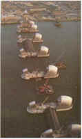 and Woolwich is the Thames Barrier, a series of massive gates that can
